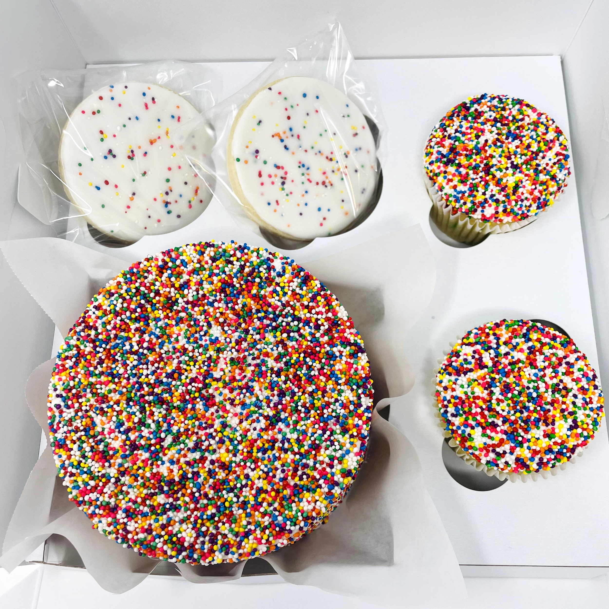 These little boxes hold a whole lotta’ gorgeous! Perfect as a gift or for those special occasions with a small crowd. Colour and message is customizable. Available in vanilla, chocolate, and funfetti.